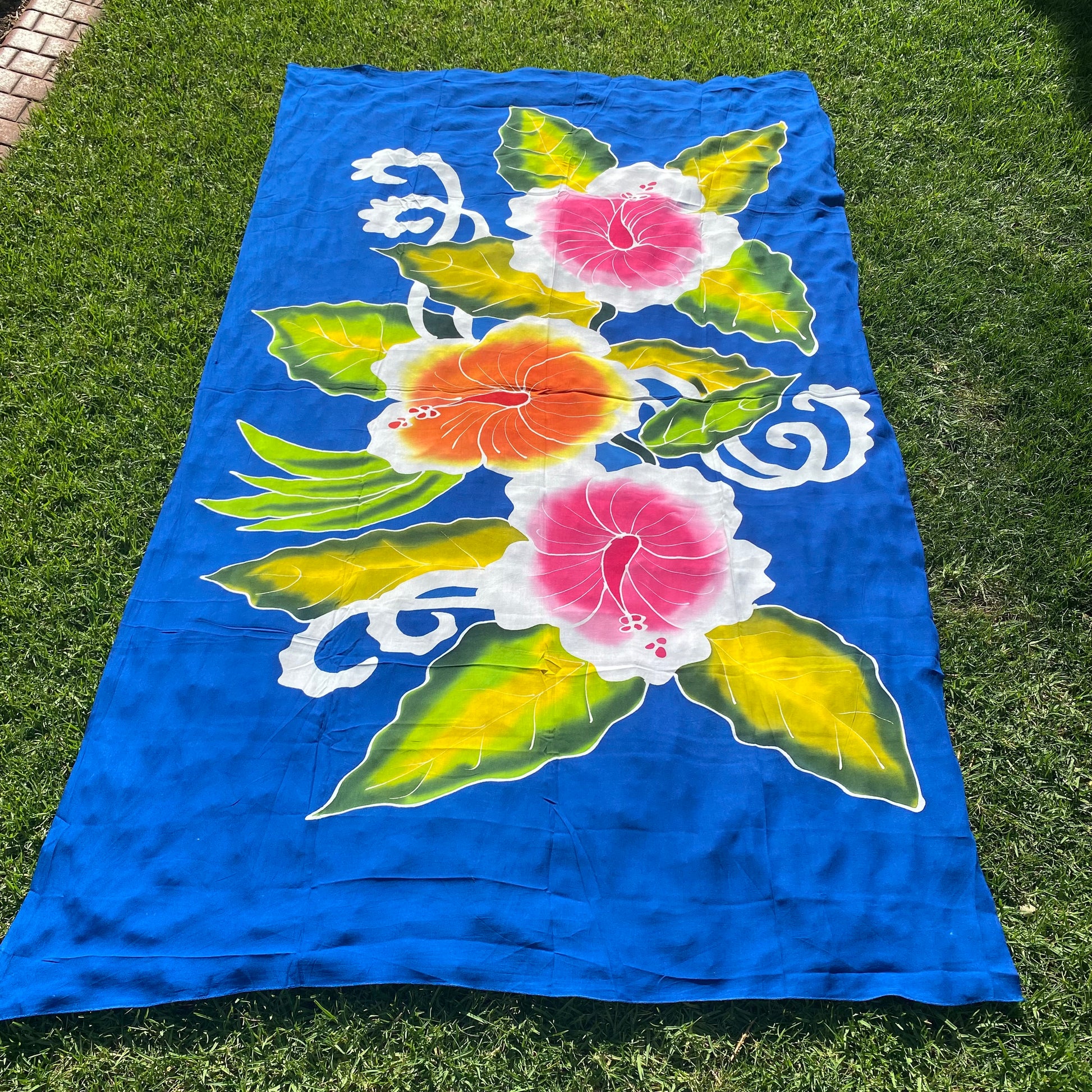 2m Ie Lavalava Women's Blue Hibiscus Pareu Floral Sarong Beach Tropical Cover Up Size L Rayon