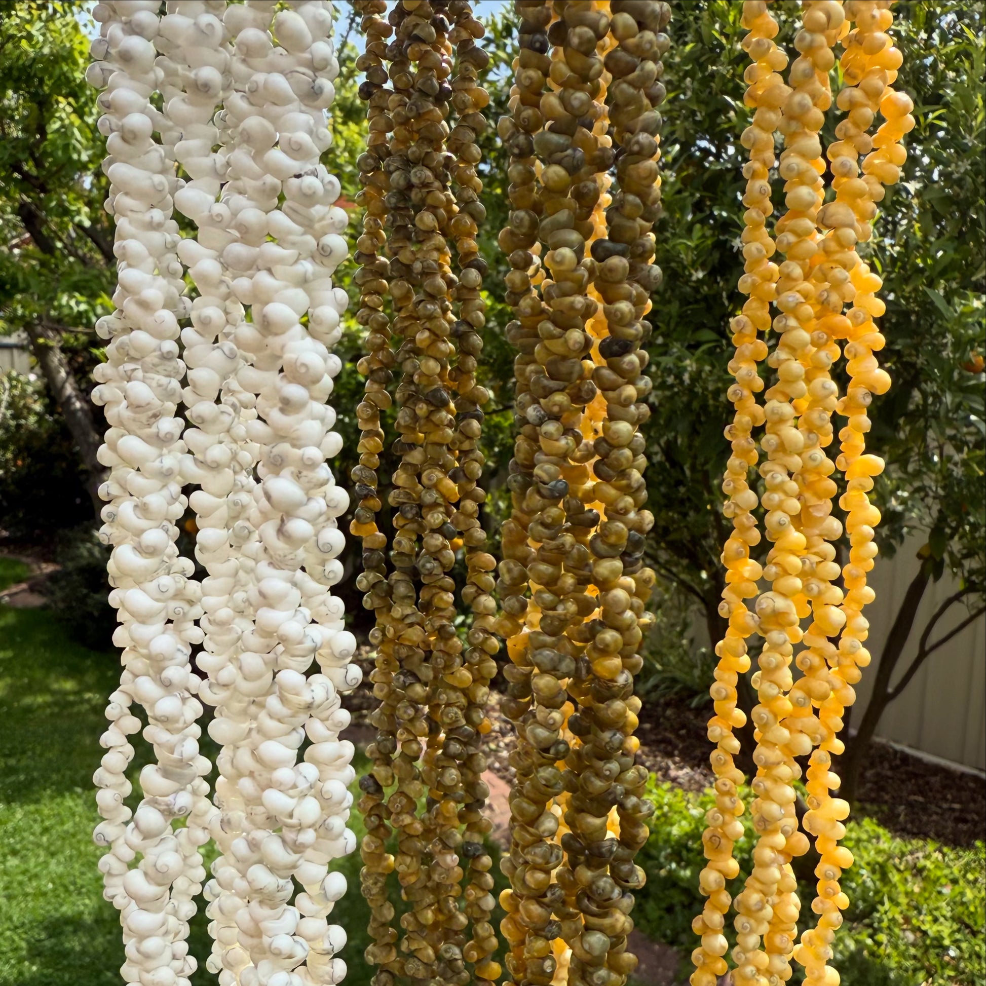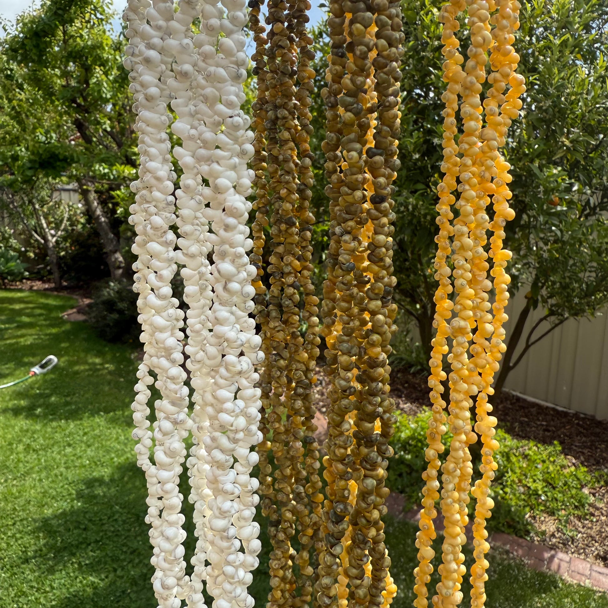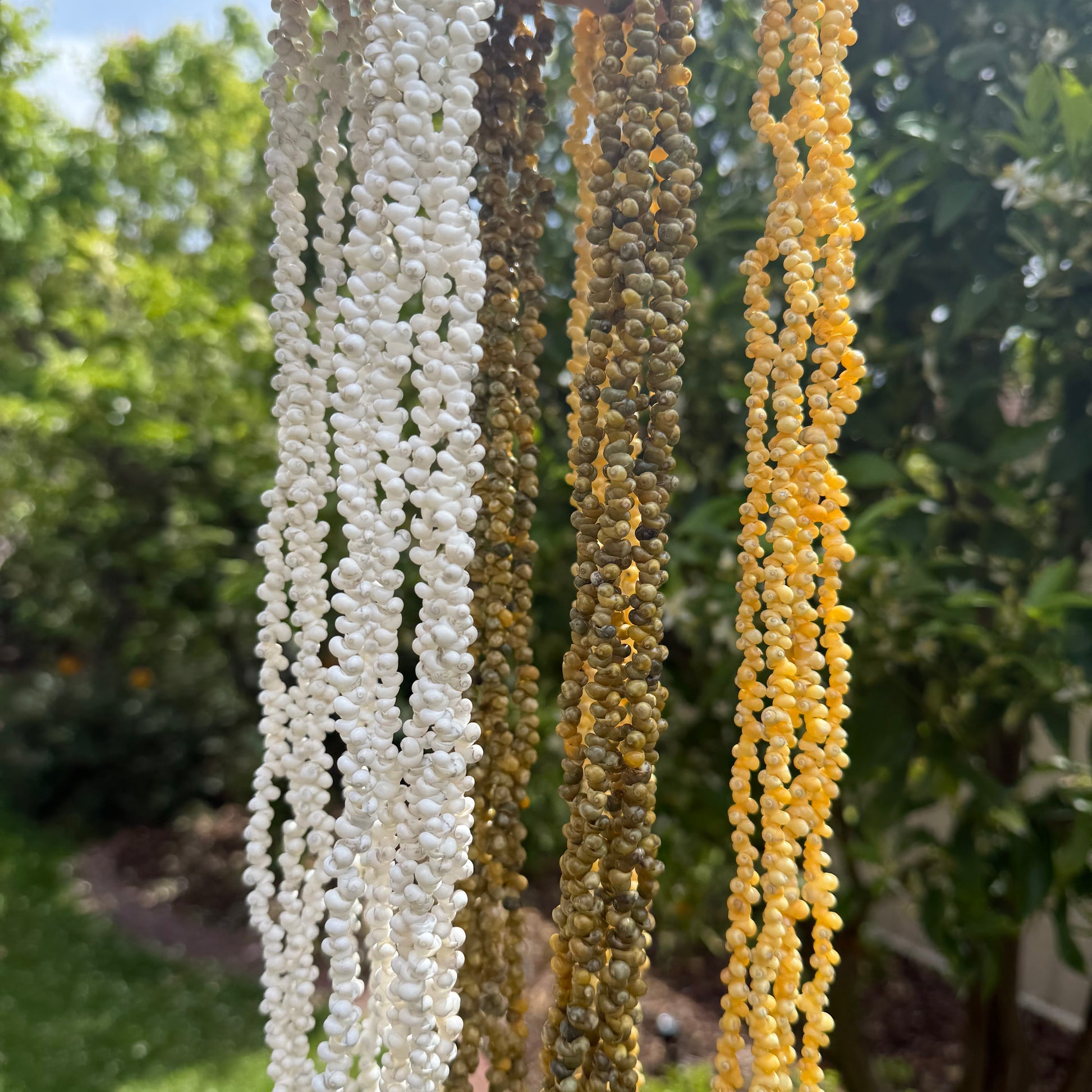 Available in multiple colours, with a choice of kukui nut or shell statement pendant.
