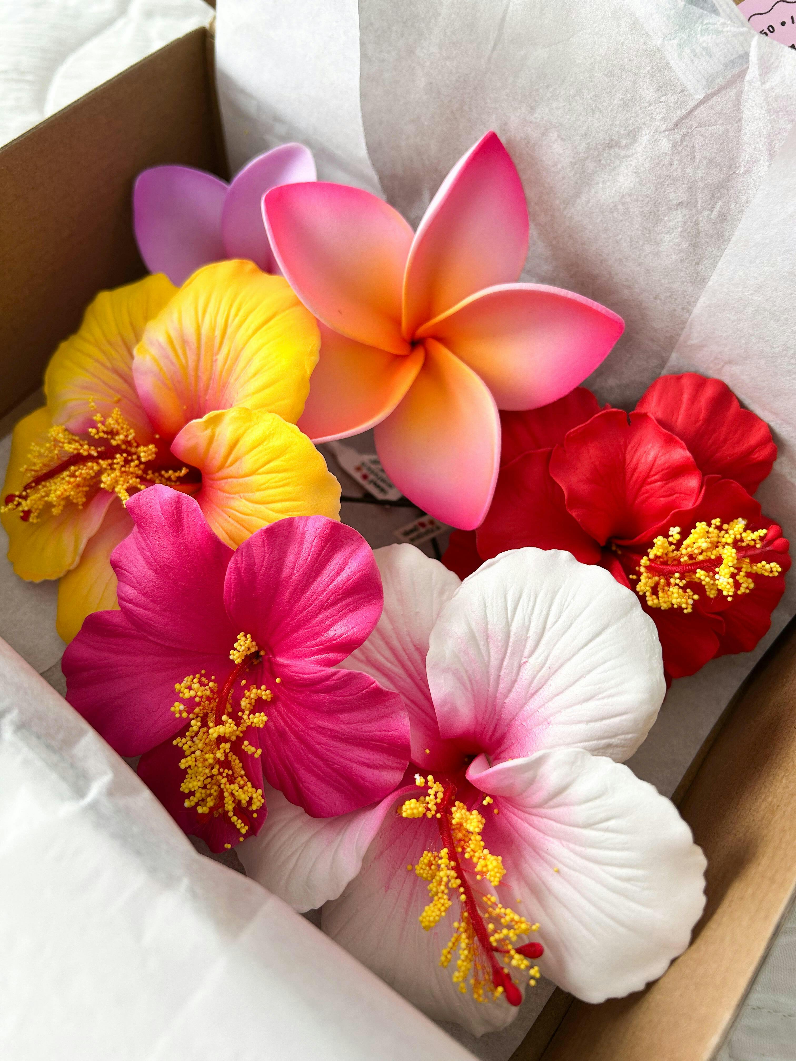 Elevate your outfit with these stunning Hibiscus Polynesian Sei Hair Flowers!